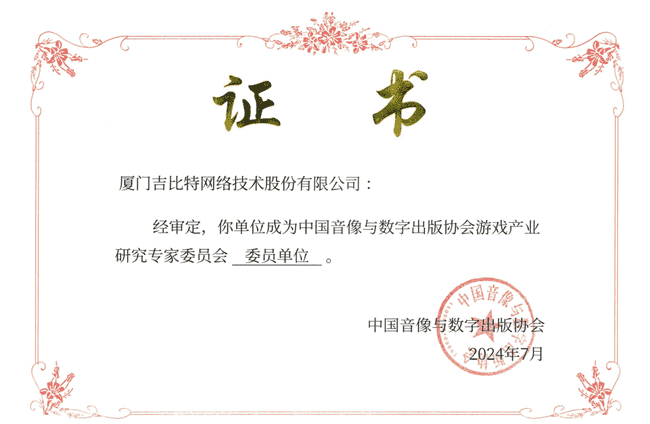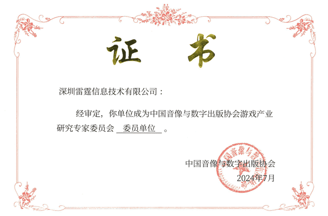2024年7月25日,,,中国音像与数字出版协会游戏产业研究专家委员会(以下简称“中国音数协游戏专委会”)成立大会在上海市召开,,厦门35273网络技术股份有限公司及其子公司深圳雷霆信息技术有限公司(以下统称“公司”)正式成为中国音数协游戏专委会委员单位。。