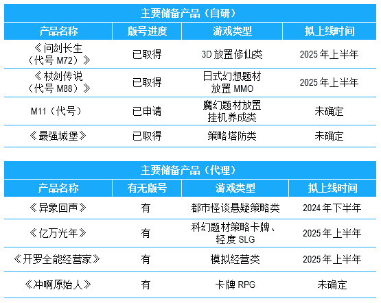 公司储备多款新品,,期待为玩家解锁更多新鲜体验,,,,部分产品如下表所示::::